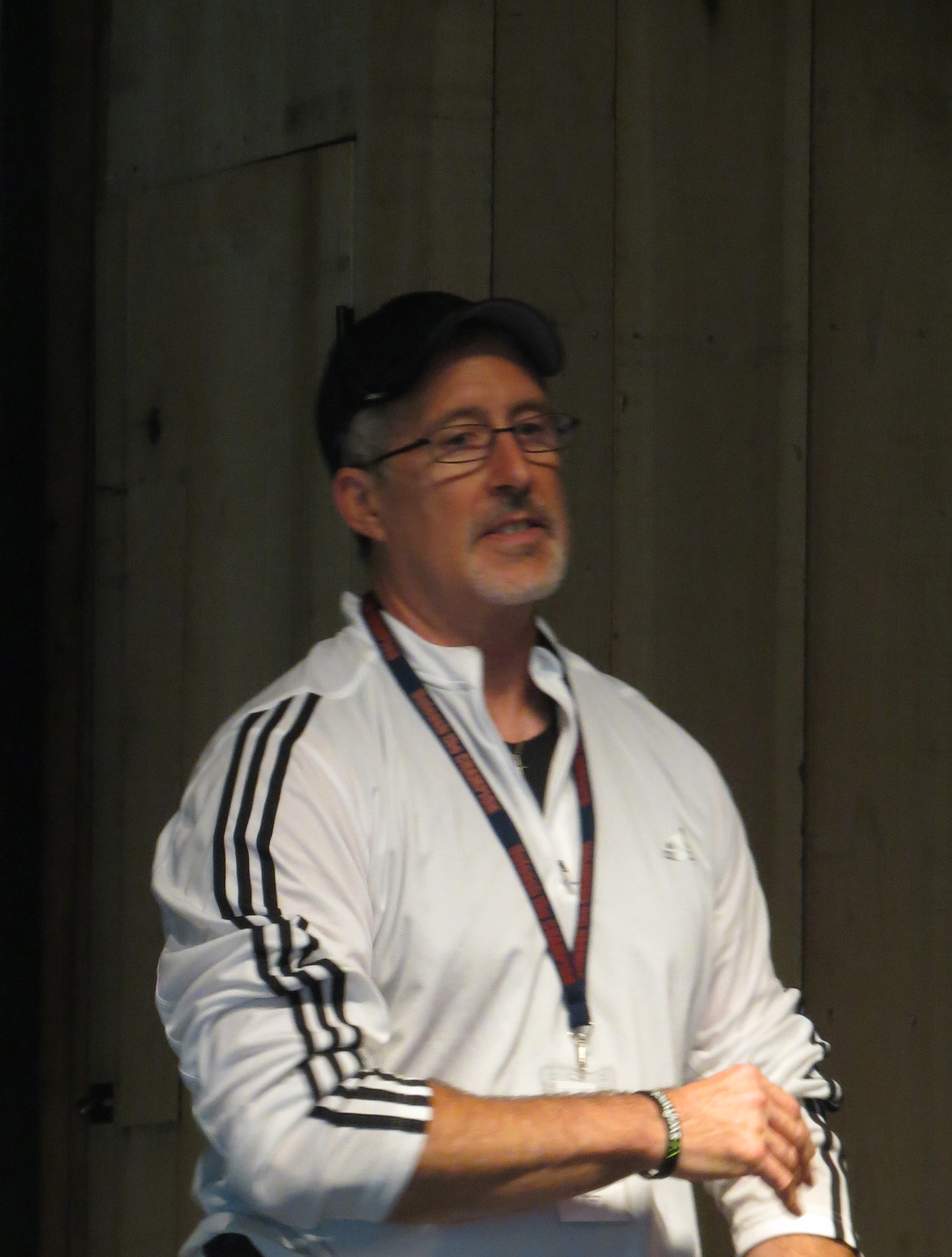 During the time where we asked questions, Hannah asked Andrew what made him come back after that first day on the turf. He thought about it and then said, he knew even after that first day that he felt part of a team and loved that. He wanted to belong to something that made him feel like this. Then he said to us, “what do you get out of quitting? You have to give what you’ve got and do it, always fight, give what you have, don’t cheat yourself. It’s hard, I was 400 pounds and I hated it, and knew that this is where I had to be. I’m not at goal weight yet, and I don’t want to quit, I’ll never stop! Today I’m working alongside some people who are where I was or even bigger…and I just want to say, Come with me, I want to share it with you! It’s so easy to beat, if you just have the knowledge to beat it– and a support system. It will work!”