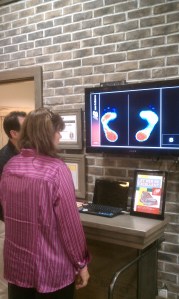After dinner, I walked over to check out the store. When I walked in, I noticed right away that they had one of “those fancy foot measuring machines” on the far back wall. I stopped as I walked in and saw the machine. On one hand, I was excited that I was actually in a New Balance store that had the machine to measure me, on the other hand, as I saw the big flat screen TV on the wall over the foot machine on the floor, my very first thought was….does my weight come up on that screen? Do they have to know my weight in order to fit me for sneakers? (those tough times of being measured for skis went through my mind, where you have to give your weight in order to rent or buy skis).